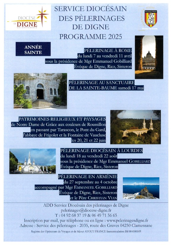 * Pèlerinage à Rome du 7 au 11 avril - Année Sainte* Pèlerinage au Sanctuaire de la Sainte Baume samedi 17 mai